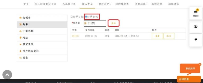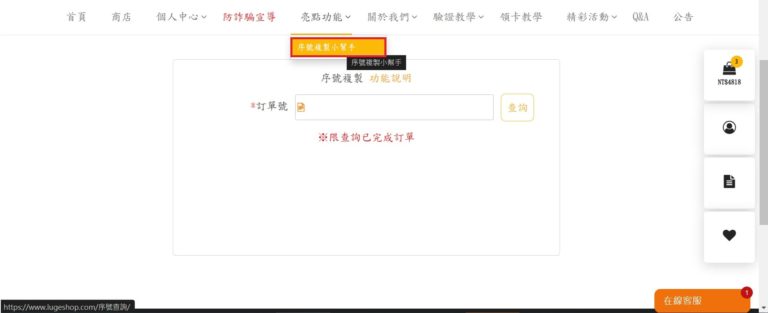 Step1.至序號查詢內輸入訂單號(無需#),即可產生快速複製的按鈕。