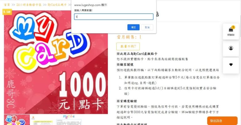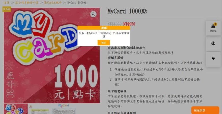 功能:需購買自動發卡的用戶若遇到庫存不夠時,可使用此按鈕通知店家補貨。